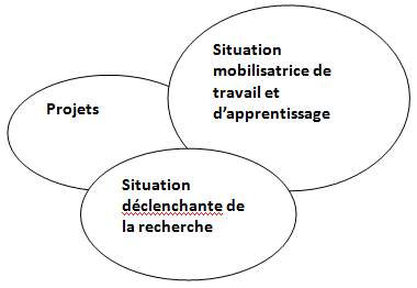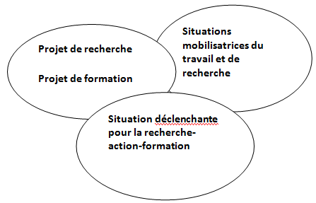 Dans le respect du « réel » de l’activité des professionnels du groupe et en « contre-transposition », à partir des expériences vécues par les acteurs, nous procédons à des choix de méthodes pour l’analyse du Faire, et, constituons progressivement et collectivement notre démarche de travail en formation. Notre projet de recherche en didactique est d’analyser les apprentissages de l’activité avec la technique des regards croisés. Notre projet de formation est de faire évoluer les dispositifs. La situation déclenchante pour la recherche-action-formation est corrélée à un ensemble de constats :