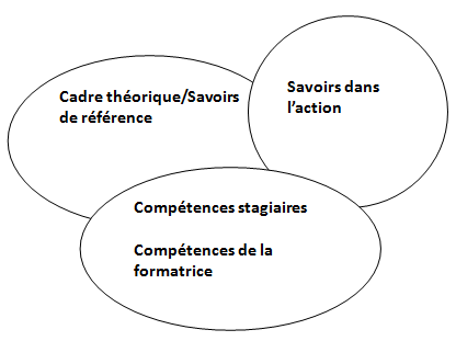 Nous faisons ressortir au sujet de l’analyse du faire de la formatrice, un ensemble de compétences : « Effacement/Présence » en situation d’accompagnement ; « Effet de reprise : de leur tâche sur celle des élèves » ; « Accompagnement de moment de rupture » lorsqu’elle leur demande : « est-ce que c’est fiable ? »