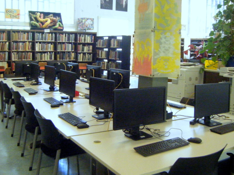La visite s’est ensuite prolongée dans la bibliothèque "J.M Carras" de l’école maternelle du campus. Récemment ouverte dans un bâtiment neuf, celle-ci est d’une taille équivalente à celle d’une salle de classe et dispose d’environ 4300 documents, essentiellement de la fiction, en grec et en langues étrangères. Il y a un seul poste de bibliothécaire scolaire et son temps est essentiellement consacré à la promotion de la lecture, avec un accueil systématique des classes [4].