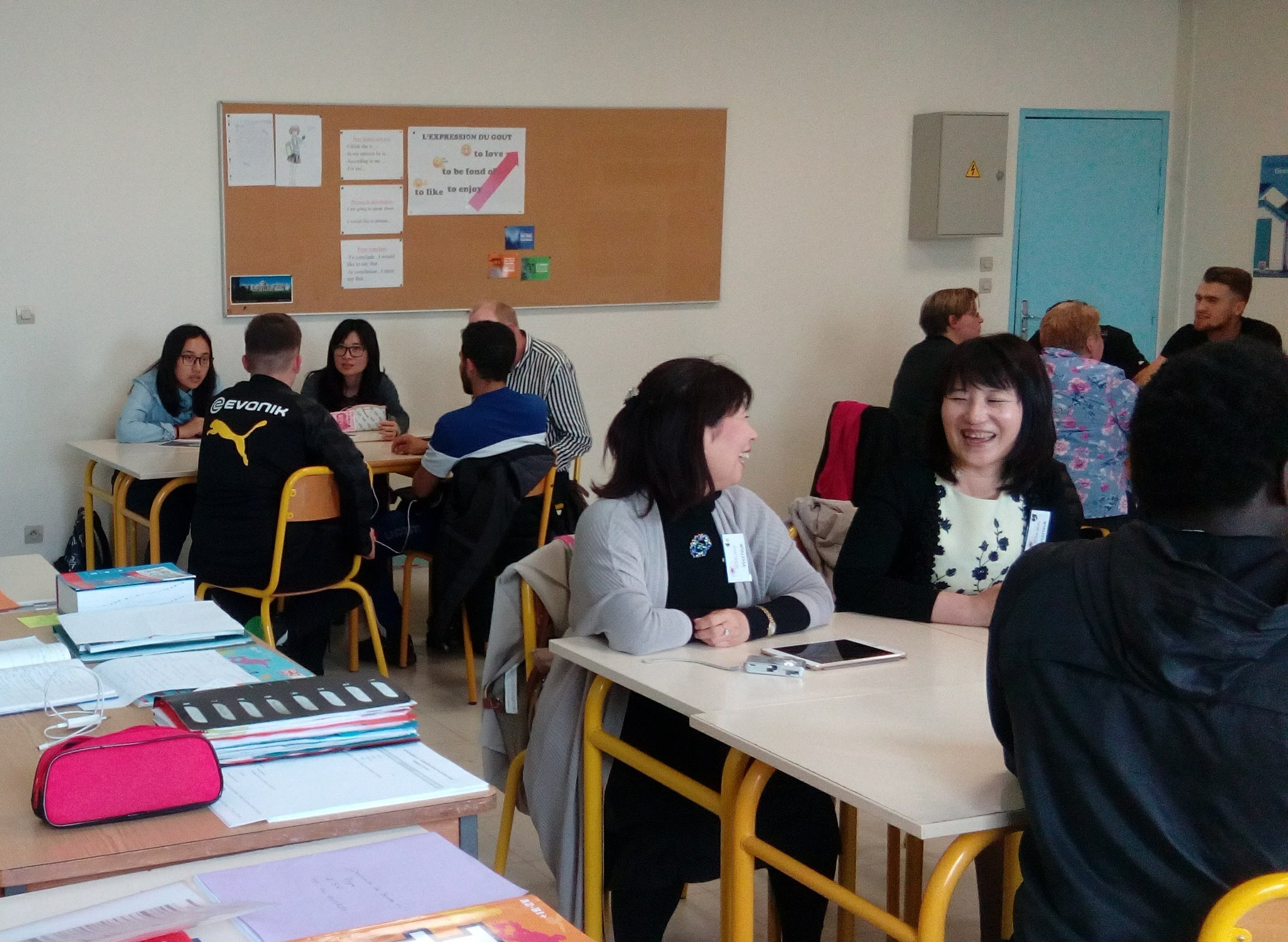 Les collègues étrangers ont assisté à la première partie de cette séance et ont ensuite enchaîné avec l’observation d’un cours d’anglais avec une classe de 1ère Bac professionnel ELEEC. En prévision de cette visite, l’enseignante d’anglais avait conçu une séance "interactive" : les élèves avaient préparé des questions à poser aux collègues de la section School Libraries, et ont pu échanger en anglais sur le système scolaire et leur vie d’élève au sein du lycée.