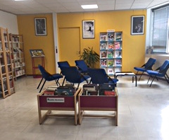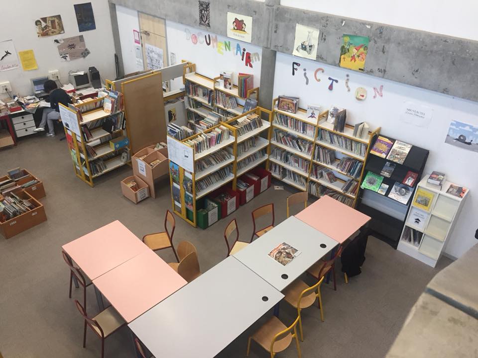 La matinée s’est poursuivie par la visite des bibliothèques de sections pour les niveaux collège et lycée, en commençant par la bibliothèque des sections anglophone, hispanophone et italophone, regroupées dans un lieu unique dont l’ouverture et la gestion relèvent de la responsabilité des représentant.e.s des associations de parents d’élèves des sections correspondantes. Ensuite, le groupe a également pu visiter la bibliothèque de la section japonaise, qui ressemble plus à un petit bureau, et dont l’accès et la gestion du fonds documentaire se font sous la responsabilité des professeur.e.s de la section. La matinée s’est achevée par une séance d’observation d’une classe de 2nde anglais euro, dans le cadre d’un cours d’histoire dispensé en anglais ; la deuxième partie du cours a été l’occasion, pour les élèves, d’échanger avec les collègues étrangers, en anglais, à propos de leur scolarité à la CSI et des projets auxquels ils participent au sein de l’établissement. L’après-midi, le groupe de participants a effectué une visite de la bibliothèque Lacassagne, dans le 3ème arrondissement de Lyon, ouverte en octobre 2017, et appartenant au réseau de la Bibliothèque Municipale de Lyon. La responsable de la bibliothèque, Virginie Eck, a commencé par présenter au groupe le fonctionnement en réseau de la bibliothèque, son projet et ses spécificités, ainsi que les partenariats avec les publics scolaires. Le groupe a ensuite parcouru les différents espaces de la bibliothèque, définis en trois grandes thématiques : "Découvrir", "grandir" et "temps libre". |